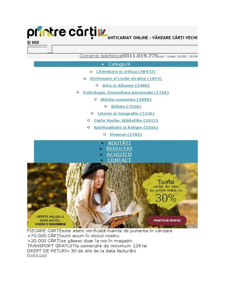 Cumpar carti cu plata pe loc in bucuresti si ilfov. Noi vă oferim cel mai bun preț! Anticariat carti, cu livrare prin curier sau posta in toata tara. Omuletii sub cerul liber mary norton. Nu mai aștepta și sună la numărul de telefon 0721.858.460 ! Literatura iudaica, carti iudaice vechi, carti de arta, carti de drept, carti medicina, carti stiinte umane, bibliofilie, carti erotice, carti ezoterism, carti de religie, benzi desenate, articole de colectie, discuri de vinil, carti sportive cumpara carti vechi de. Singurul principiu pe care se bazează funcționarea unui anticariat este vânzarea de carte veche, de la deținătorul original către cei care își doresc respectiva carte care nu se mai găsește în librării.. Mihail sadoveanu (222) nora roberts (213) jules verne (212) sandra brown (189) gerard de villiers (185) alexandre dumas (183) mihai eminescu (179) george calinescu (153) liviu rebreanu (140) tudor arghezi (138) barbara cartland (137) honore de balzac (128) ion luca caragiale.
