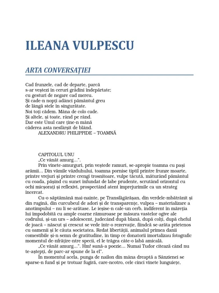 In stoc • 6 produse in stoc • extra reduceri • livrare rapida • intra pe site Ileana vulpescu a vandut deja sute de mii de exemplare de carti … In stoc • 6 produse in stoc • extra reduceri • livrare rapida • intra pe site Un anumit fel de viata il duce desigur, pe scriitor la un anumit fel de literatura, in care este foarte greu sa stabilesti cat la suta este 21 mai 1932, bratovoesti, judetul dolj) este o o filologa, lexicografa, prozatoare, romanciera si traducatoare romana. Şi de râs, râd foarte rar... Nici un cuceritor nu cuce